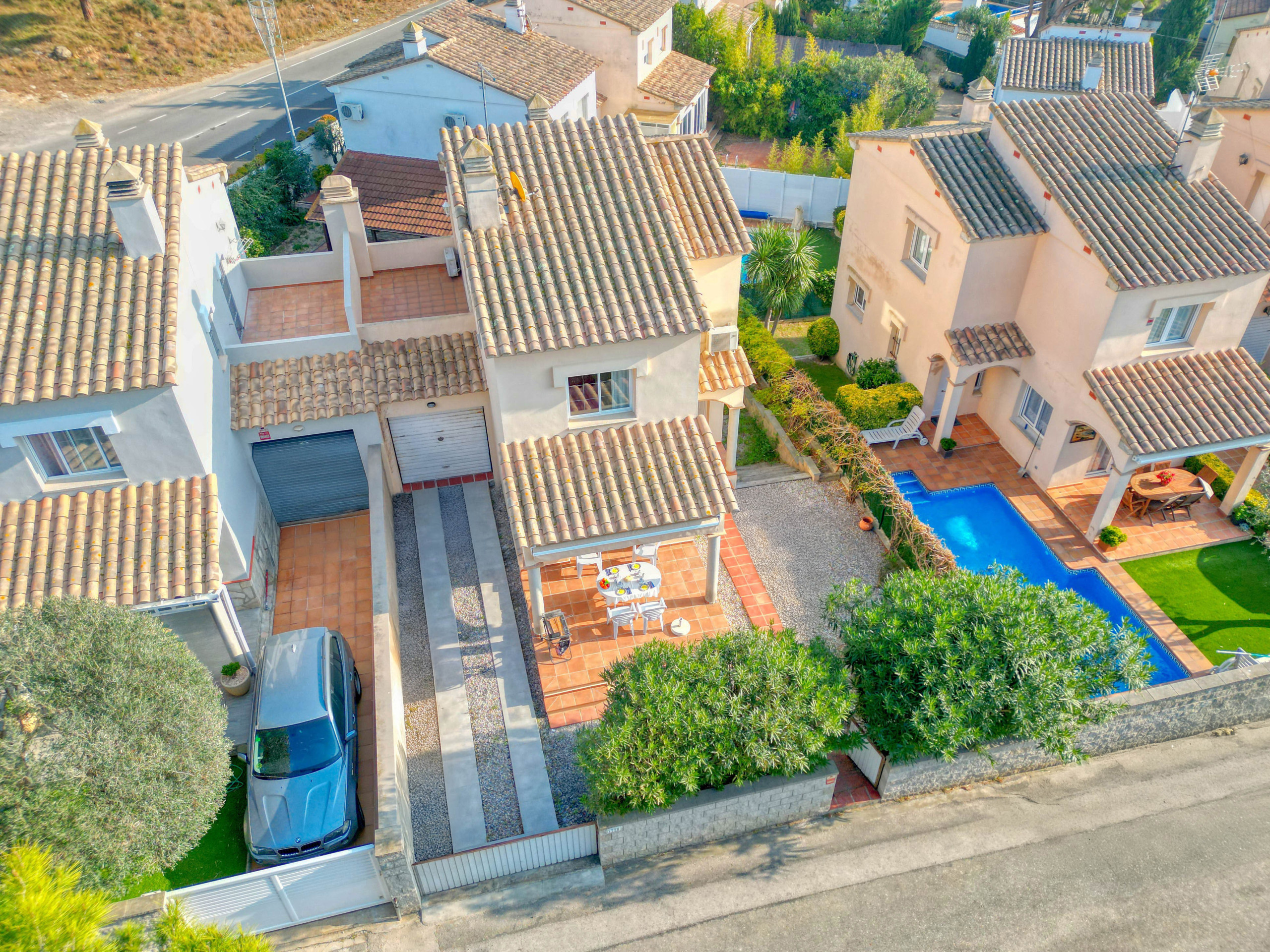 Esta casa que dispone de dos baños completos, tres habitaciones y mucho espacio exterior tiene todo lo necesario para que tus vacaciones en l'Escala sean perfectas, con aire acondicionado, televisión, barbacoa...