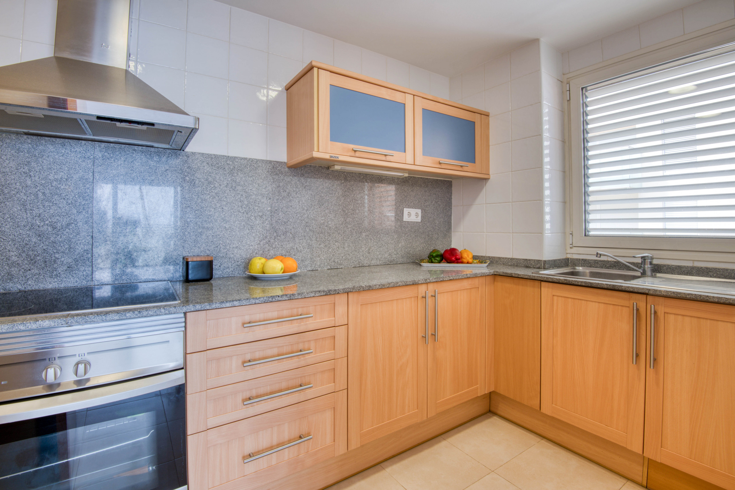 El apartamento está completamente reformado. Nos recibe con un amplio espacio que comparten una preciosa cocina abierta totalmente equipada, y el salón-comedor con salida directa a la terraza. Dispone de dos dormitorios y un baño con ducha. El primer dormitorio está equipado con una cama de matrimonio y el segundo con camas individuales.