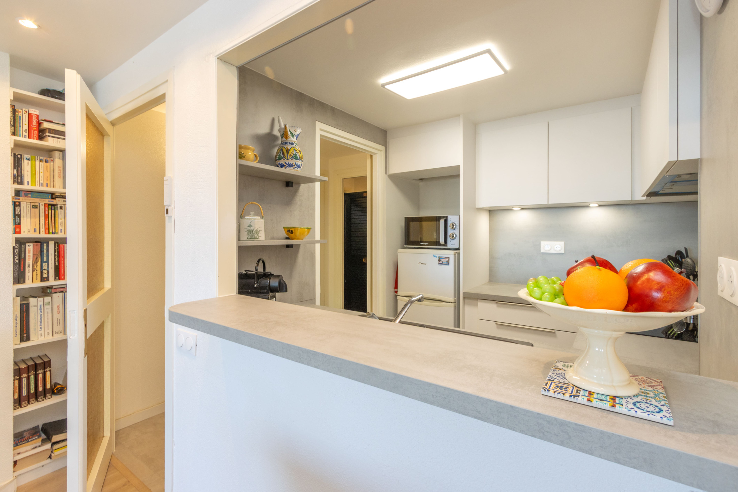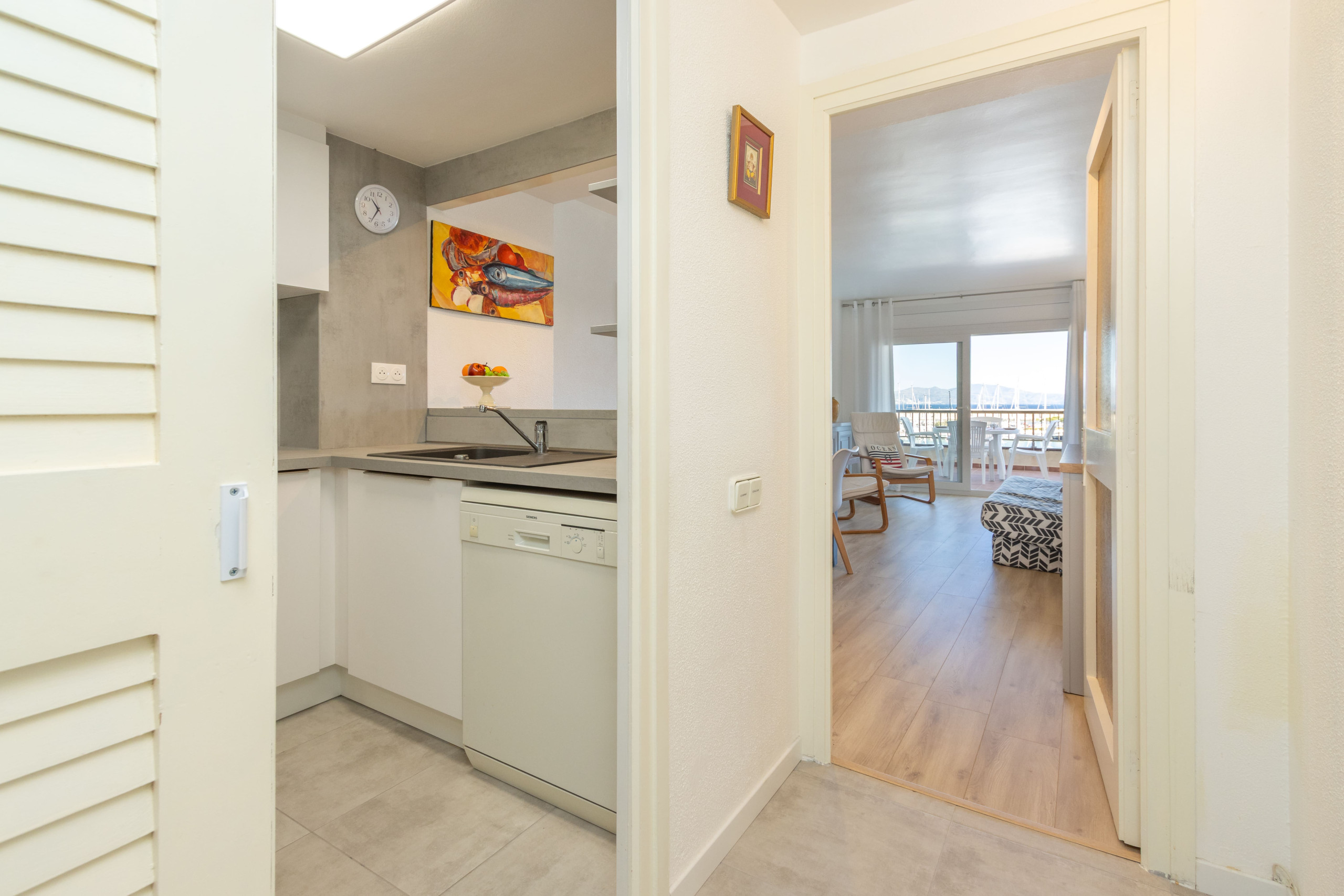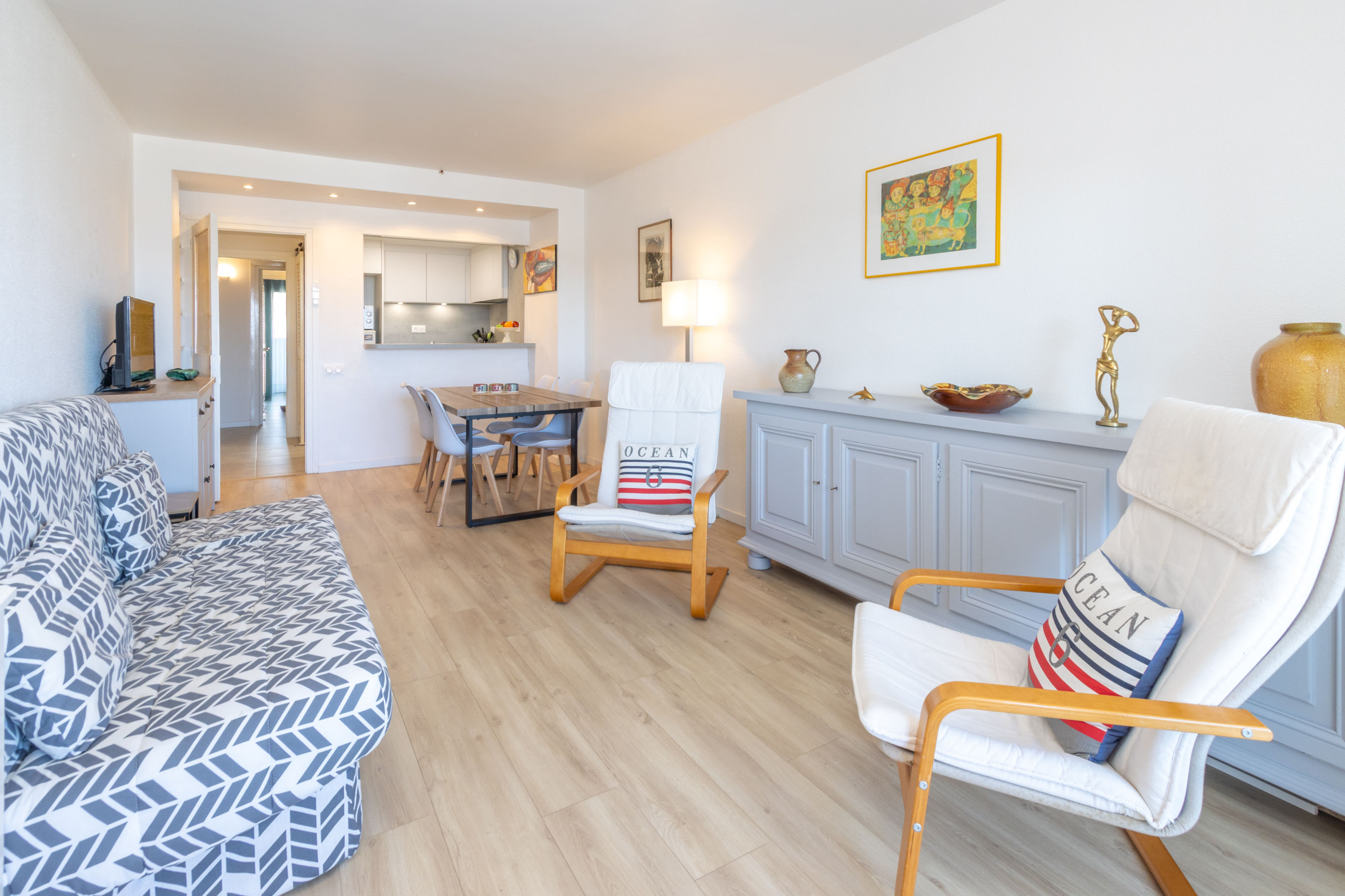 En entrar, un ampli rebedor dóna pas a la cuina americana, totalment equipada amb tots els electrodomèstics i estris necessaris perquè no et falti res durant la teva estada. A continuació, trobareu un lluminós i espaiós saló-menjador, decorat amb gust i estil, que s'obre directament a la terrassa, creant un ambient perfecte per relaxar-se o compartir moments especials davant del mar.