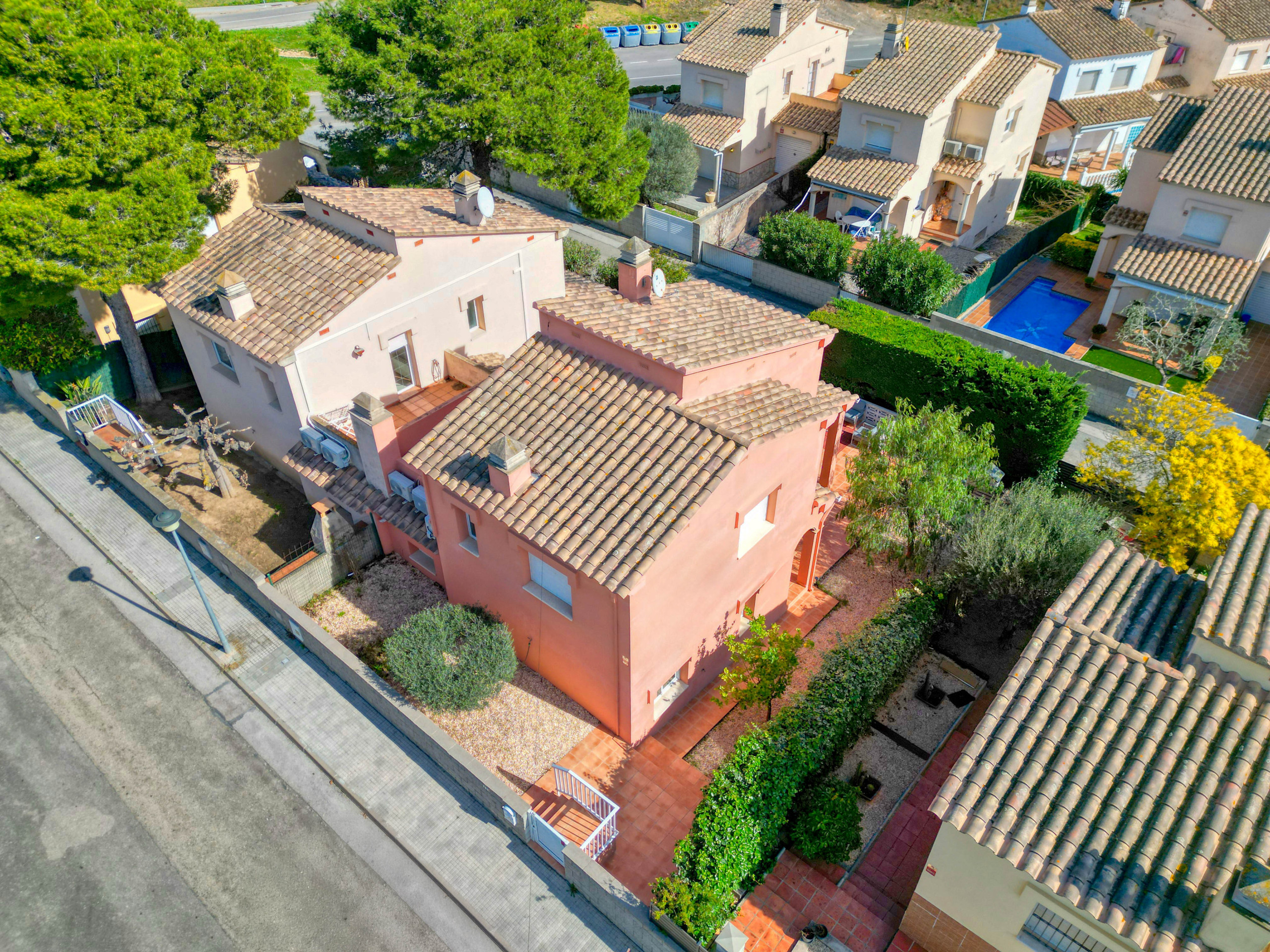 Es handelt sich um ein vollständig eingezäuntes Einfamilienhaus, das perfekt für Familien ist, mit einem großen Außenbereich, in dem Kinder mit völliger Sicherheit und Ruhe für die Eltern spielen können.