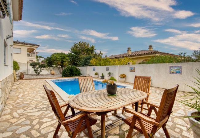 Haus zum Verkauf in Sant Martí d'Empúries, l'Escala. Ein unglaubliches Einfamilienhaus zum Verkauf mit privatem Pool, nur 200 Meter von den besten Stränden in Empúries und nur 7 Gehminuten von...