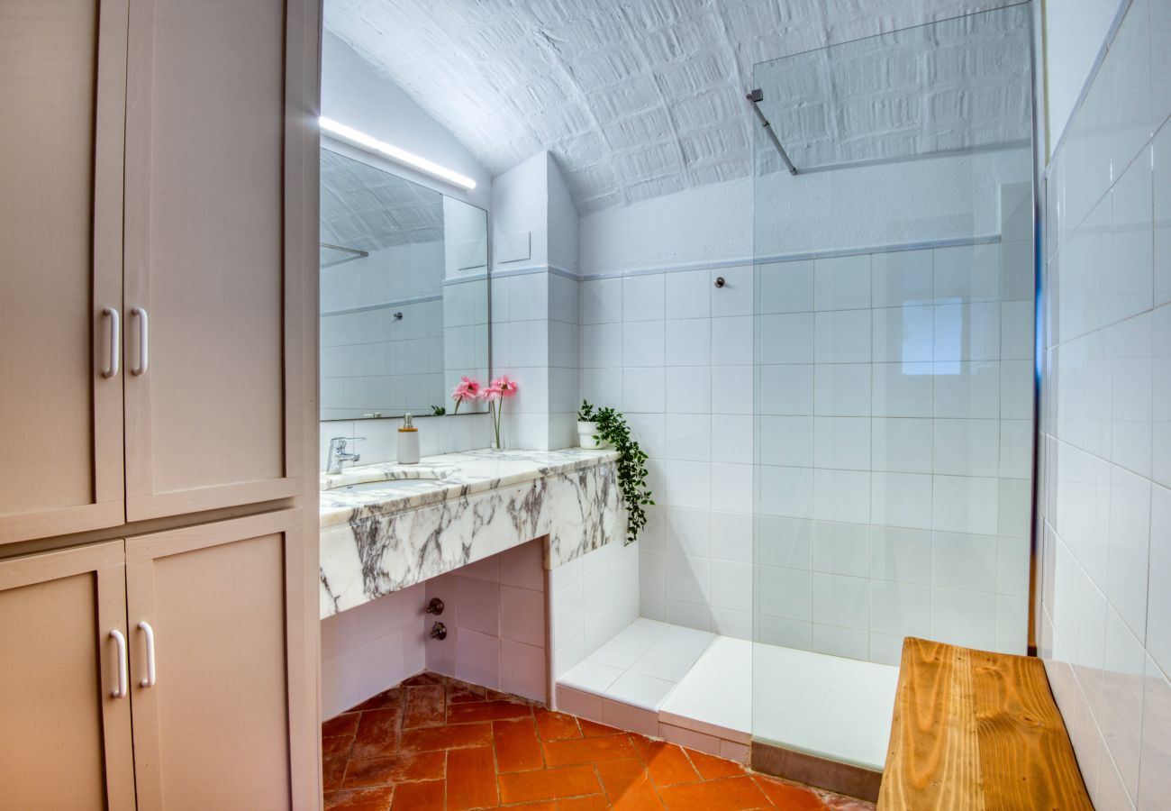 Ascend to the first floor to discover the luxurious master bedroom, complete with ample wardrobes and a spacious renovated bathroom with shower. Relax in the adjoining area, ideal for relaxing with a good book and soaking in a serene atmosphere.