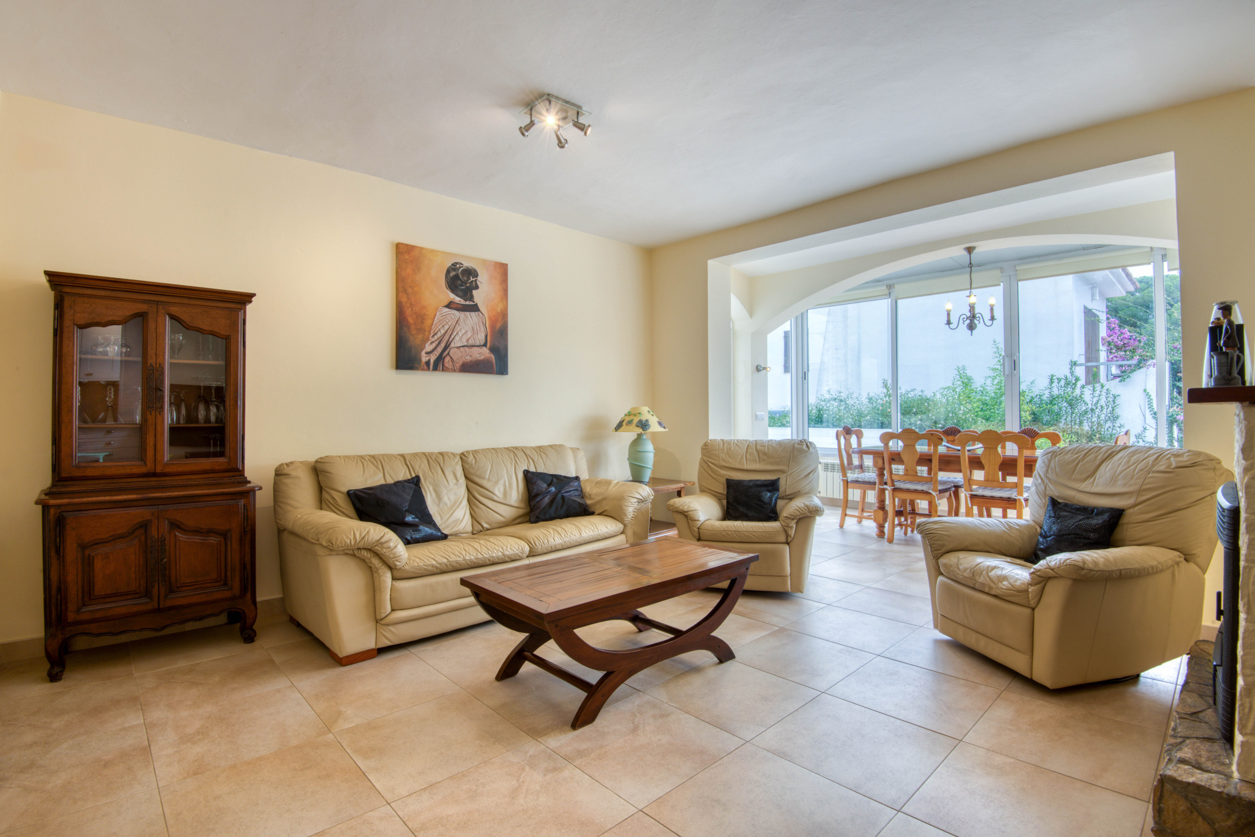 The interior is warm and welcoming. Upon entering, you’ll find a bright and spacious living-dining room with direct access to the terrace, as well as a modern and practical kitchen. On the same floor, there are three bedrooms: two with double beds —one of them en suite— and one with two single trundle beds.