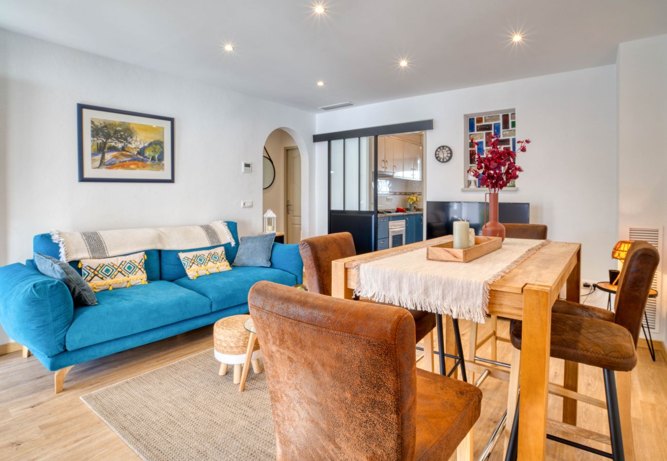 Nice holiday home in l'Escala, just 150 meters from Riells beach. It is a very quiet area since it is located in a passage where cars do not circulate. However, it has the promenade with shops, restaurants and shops less than 2 minutes walk from the accommodation. An authentic marvel for those who seek tranquility on their vacation without losing proximity to the beach or the most active areas of l'Escala.