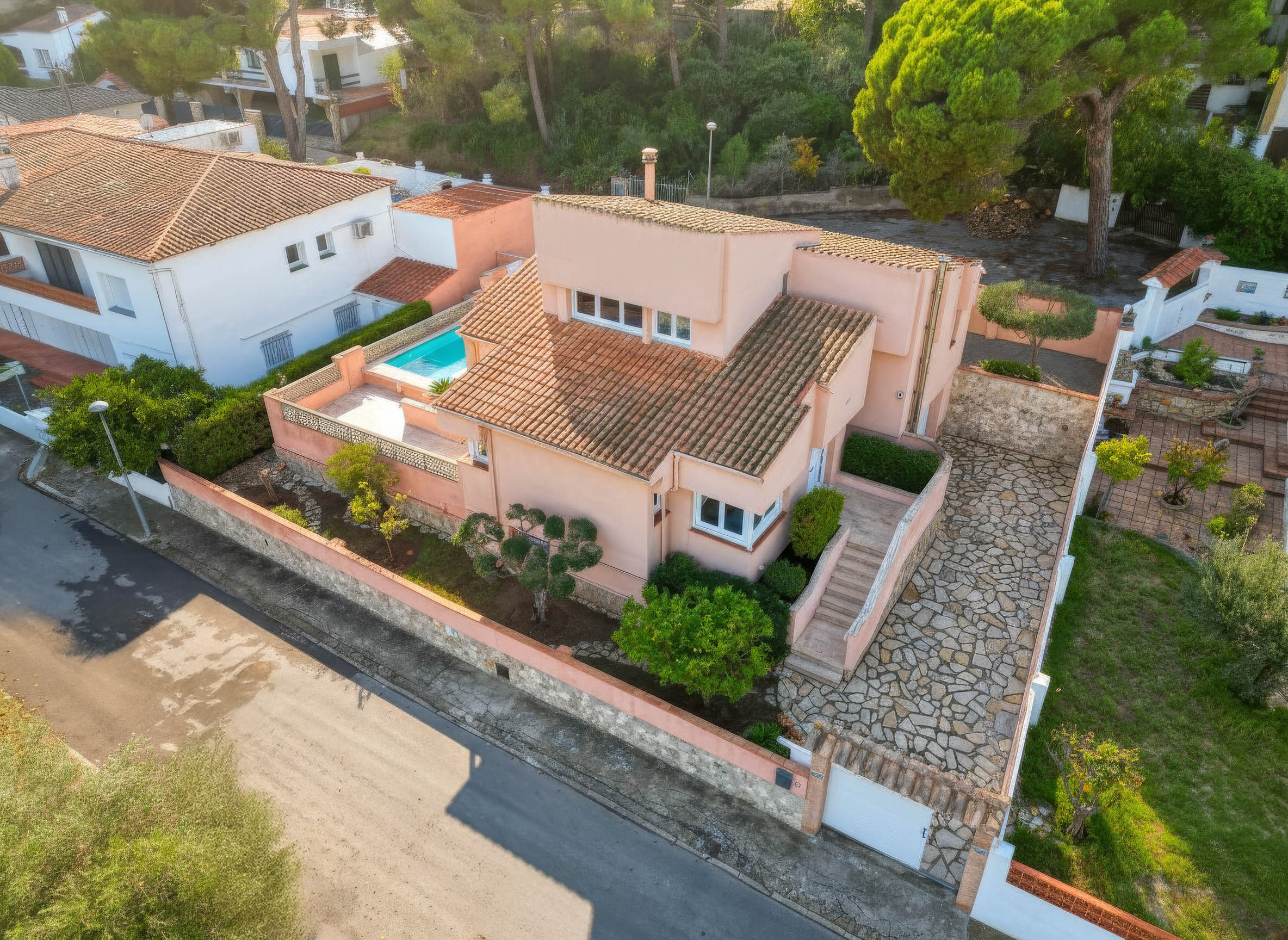 Vous aimerez cette maison à l'Escala dès le premier instant. Dès que nous entrons, nous trouvons la meilleure partie de la maison : l'extérieur. Il est conçu pour que vos vacances à l'Escala soient parfaites. Elle dispose d'une piscine privée rafraîchissante, entourée de mobilier de jardin (transats et grands parasols). La piscine est entourée de gazon artificiel pour le confort de toute la famille. Un autre espace équipé d'un barbecue pour préparer de délicieux repas entre amis et en famille, et aussi une belle table ronde avec des bancs où vous pourrez vous détendre, jouer à un jeu de société ou prendre l'apéritif. Sous le porche la table d'extérieur, couverte pour pouvoir en profiter tout le temps sans que le soleil ou la pluie nous empêche d'être dehors, ce que nous désirons le plus en été.
