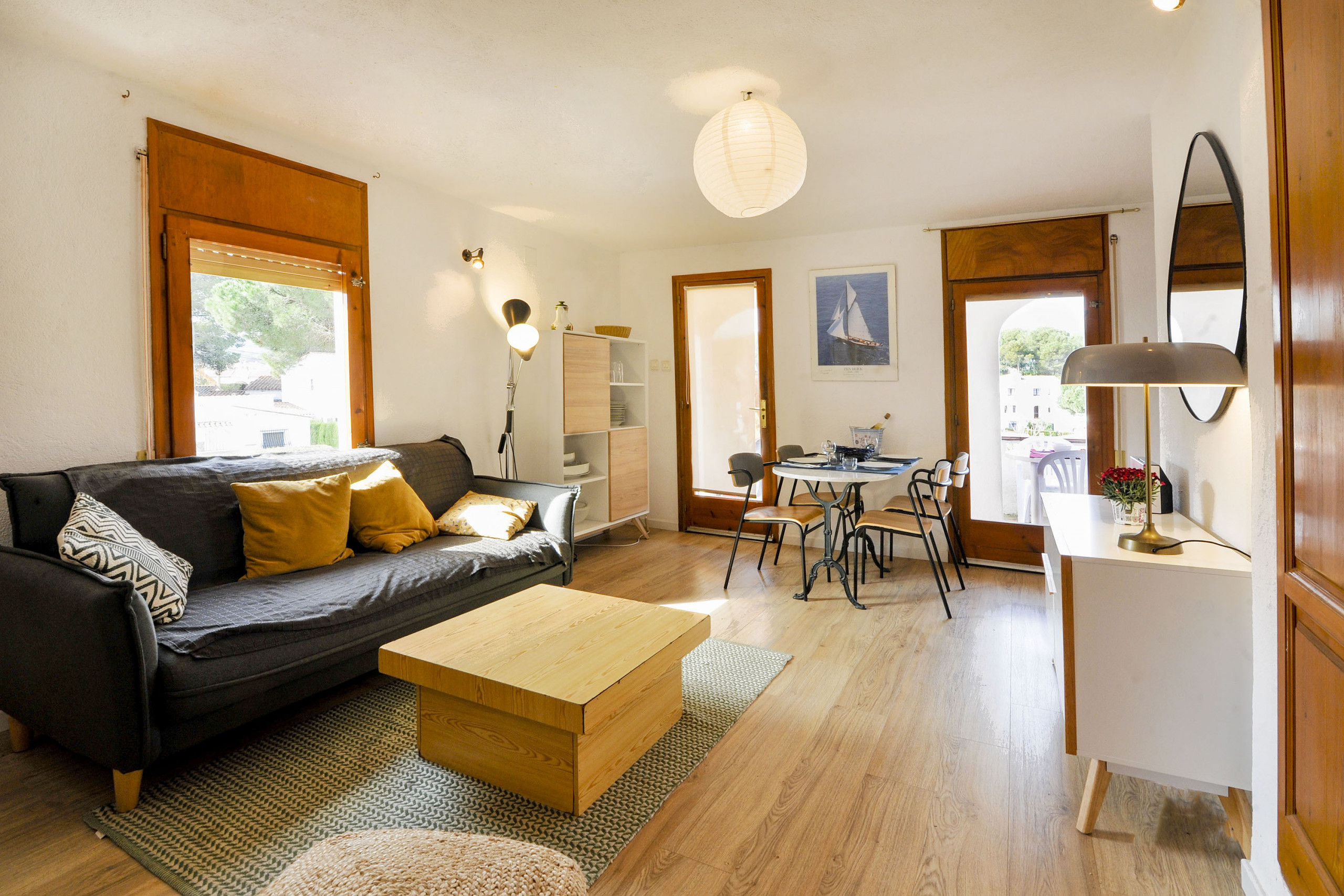L'intérieur de la maison se trouve au premier étage, auquel on accède par des escaliers. Devant la porte d'entrée, il y a une terrasse couverte avec barbecue et vue directe sur la piscine. En entrant, on trouve le salon-salle à manger et, à gauche, une petite cuisine. Une première chambre avec un lit double, la deuxième chambre avec un lit superposé et un lit simple, et enfin une salle de bain avec douche partagée par les deux chambres. La maison dispose également de la télévision par satellite et du wifi gratuit pour rendre vos vacances à l'Escala encore plus confortables.